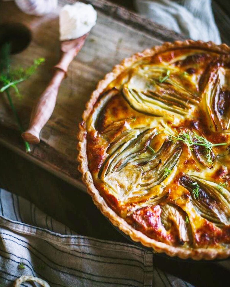 If you wish, you can decorate the tart with thin slices of fennel, before you add the cream.